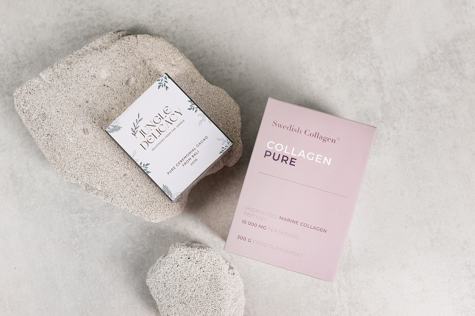 Produktpaketet innehåller kollagen för att bibehålla bättre hudkondition och 200g ceremoniell kakao för heliga kvällsritualer och för att förbättra funktionen hos det kardiovaskulära systemet.